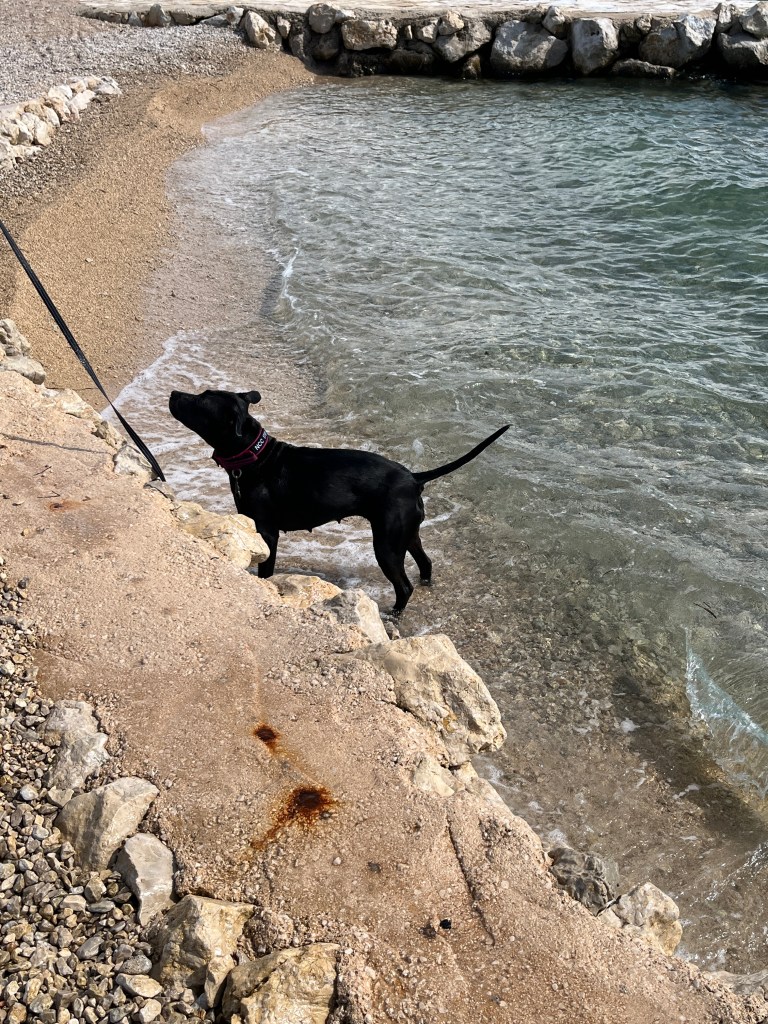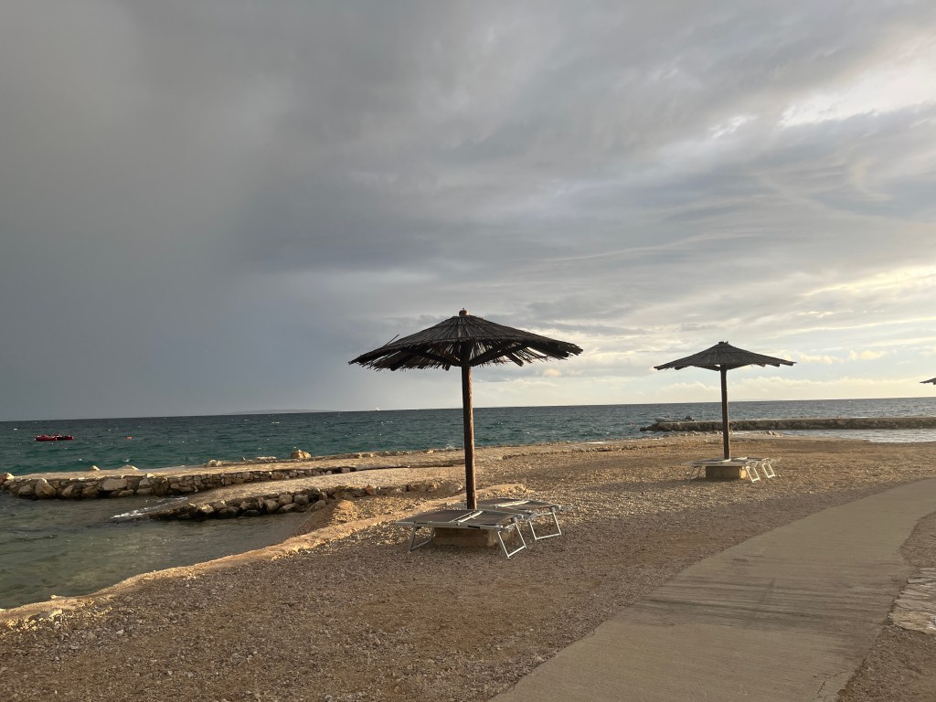 Wir sind relativ früh morgens bei nicht wirklich tollem Wetter (es hatte die ganze Nacht geregnet) vom Campingplatz Simuni zum Campingplatz Terra Park Phalaris (auch auf Pag) gefahren. Auf dem Weg haben wir noch bei einem Supermarkt angehalten, haben kurz eingekauft und sind dann zum Platz. Hier waren wir schon und sind einfach begeistert von der Lage, der Umgebung und dem wunderschönen Meer – hier wollten wir mit Mo (dem SUP) raus und Mike wollte sehr gern schnorcheln. Als wir ankamen, war es bewölkt und es regnete auch leicht. Also gab es ein Brunch im Womo und danach wurde gelesen und gechillt. Nachmittags kam die Sonne durch und wir sind zu dritt zum Hundestrand und Nala und Mike sind mit vollem Körpereinsatz im Wasser rumgeplanscht.