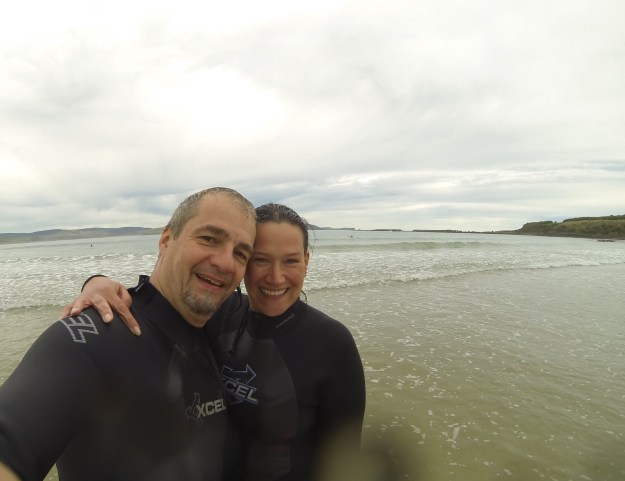 Zu den wet suits ist zu sagen, dass ich meinen nur mit Mike’s Hilfe anbekommen habe und danach wie ein großer Wal im Wasser aussah😉 Mike stand er definitiv besser als mir.