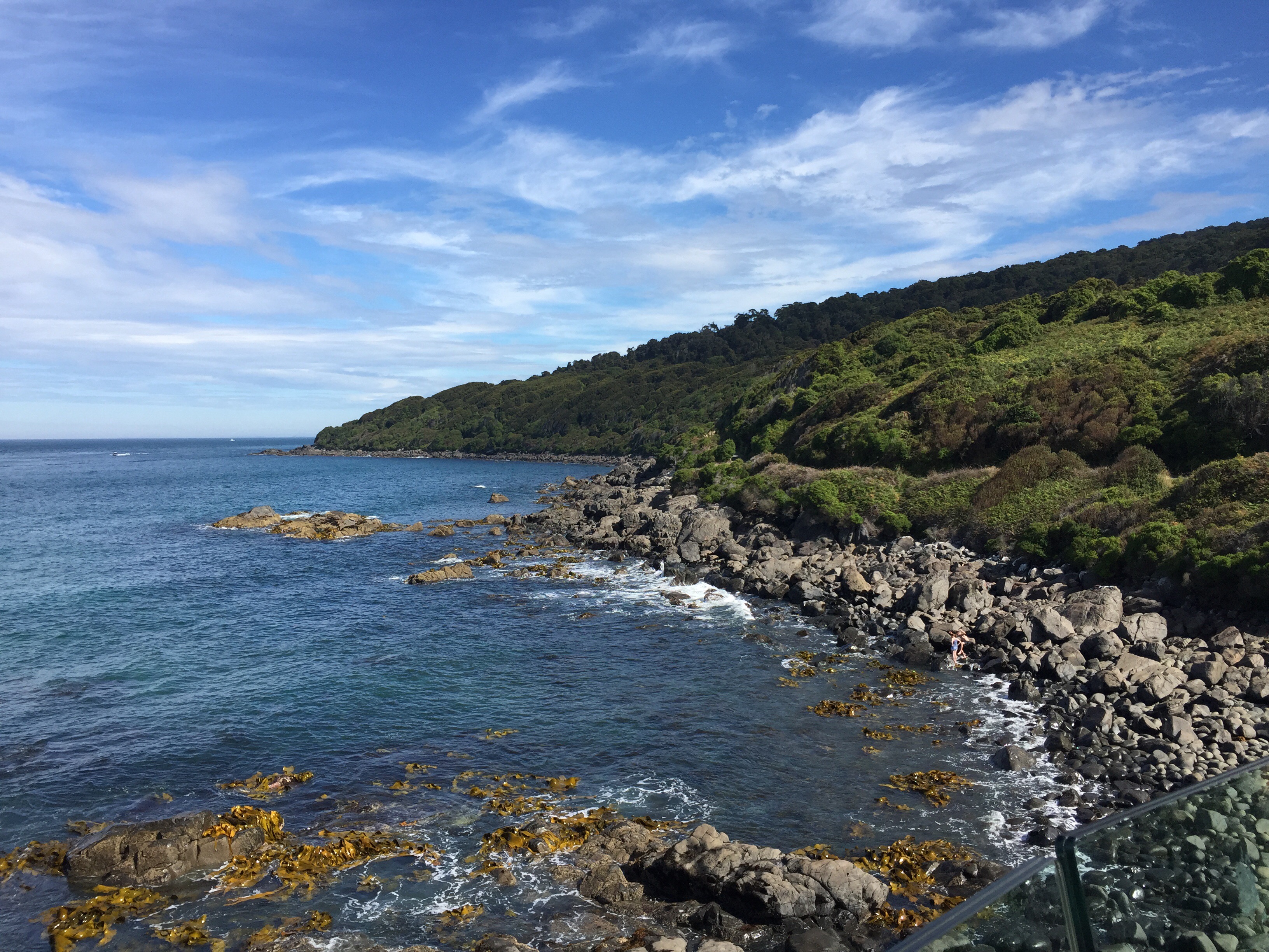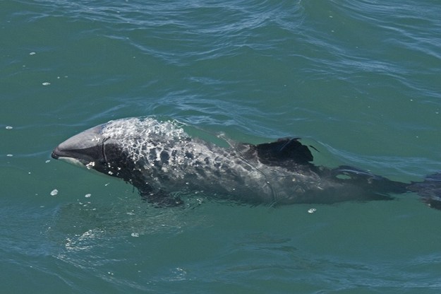 und dieses Mal mit der richtigen Ausrüstung. Wir haben uns wet suits (Neopren-Anzüge) und ein Boogieboard geliehen und sind erneut ab ins Meer. Und da ist es dann wirklich passiert, zwischen Mike und mir (und wir standen ca. einen Meter von einander entfernt) und dann um uns herum schwammen ein paar Hector-Delphine. Die sehen ungefähr so aus , das Foto ist aus dem Internet, ich hatte mein Handy nicht mit im Wasser 😉