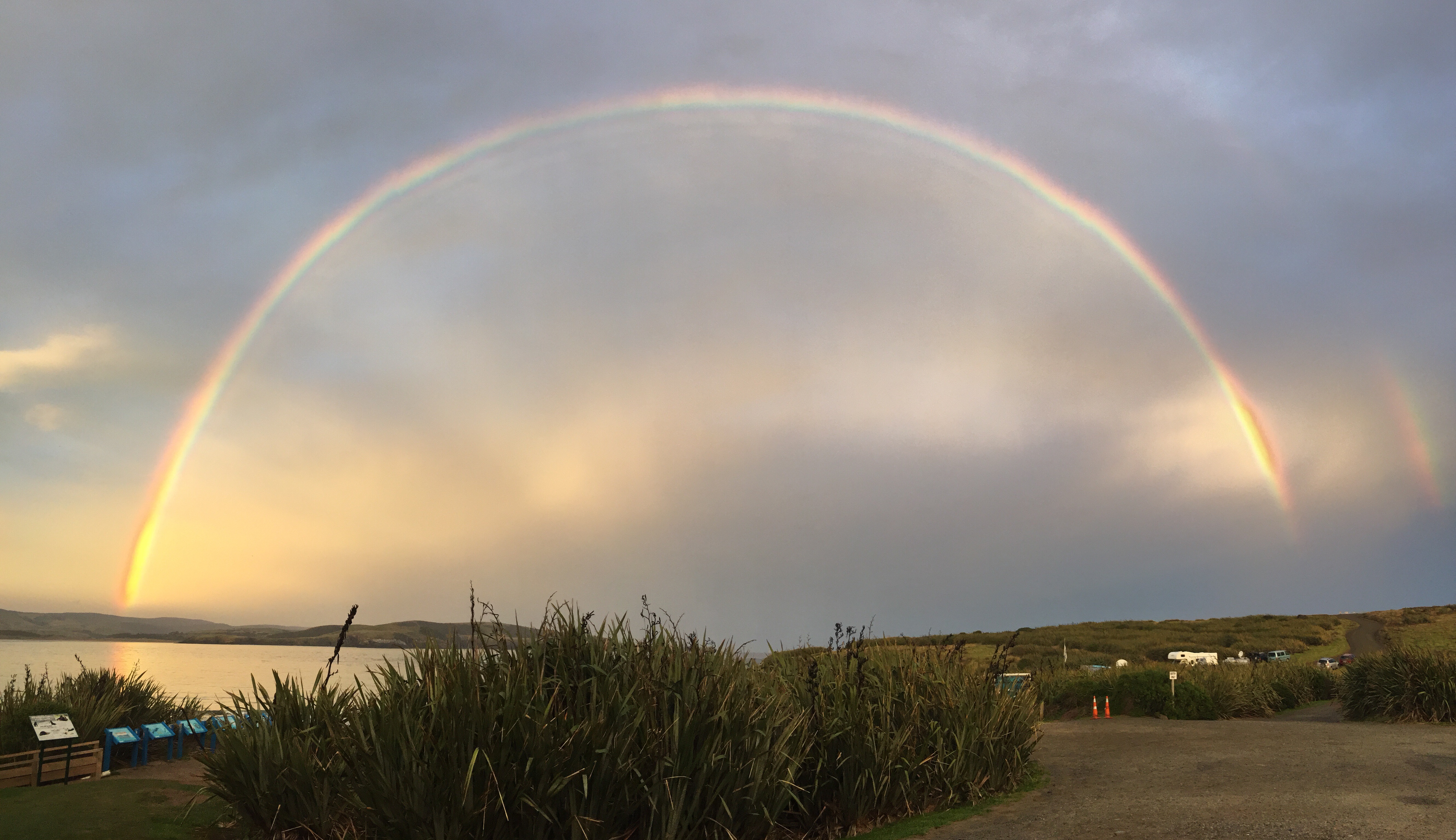 Wir beide haben noch nie einen Regenbogen gesehen, wo man beide Enden sehen kann.