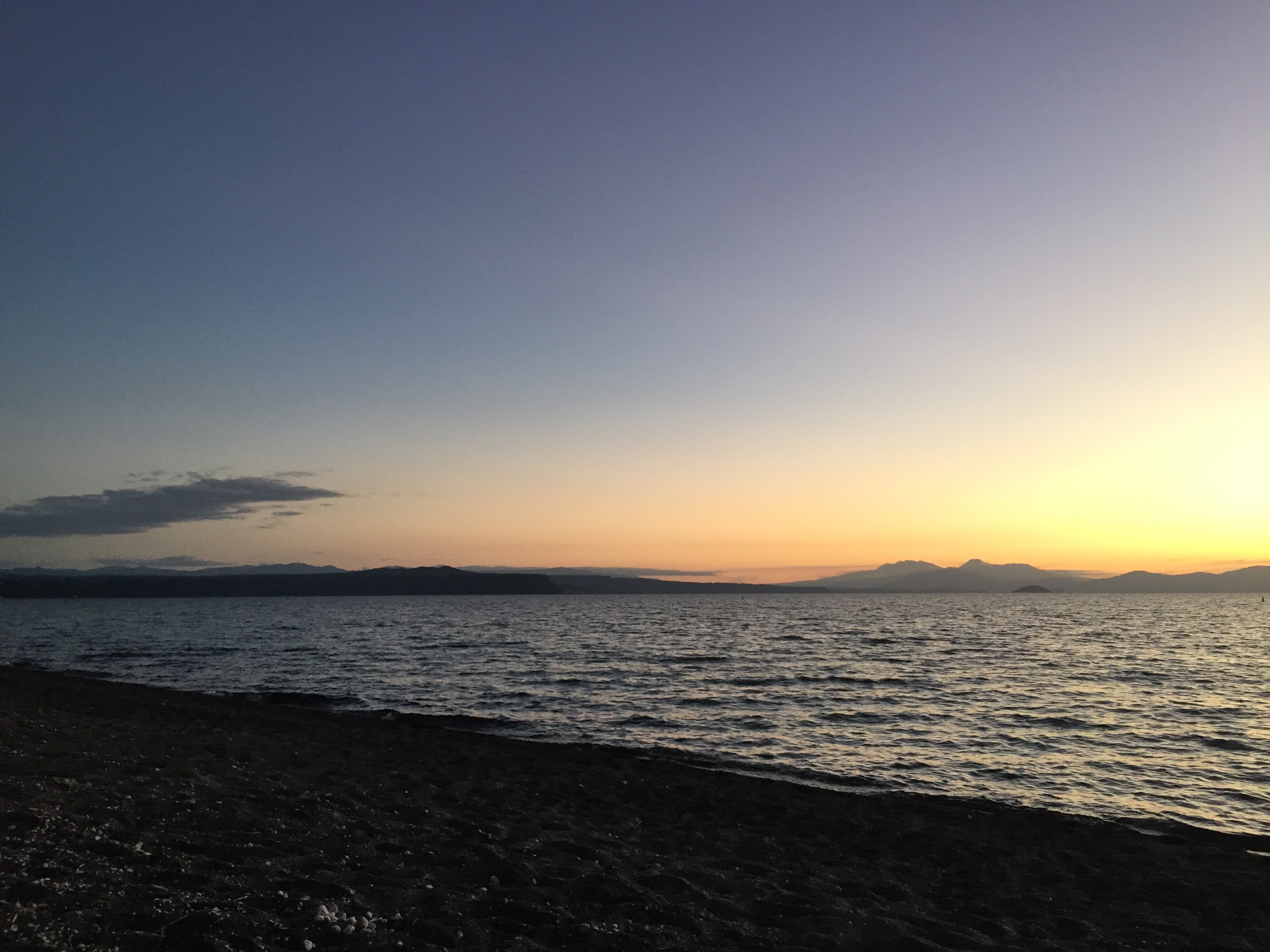 Ein unglaublich schöner Ort, um den sonnigen Nachmittag zu genießen. Wir haben im See gebadet – es war so mittelmäßig warm – ich empfand als angenehm kühl. Abends haben wir lecker gegessen und haben dann den Sonnenuntergang mit einem Glas Pinot Noir am Strand beobachtet.