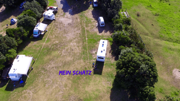Das Foto von dem Camper sowie das folgende Foto sind Luftaufnahmen, die der Mann mit seiner Drohne aufgenommen hat