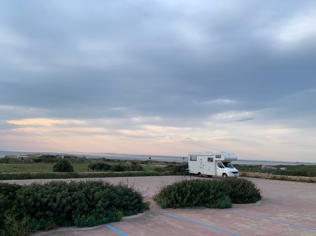 wollten wir in die Hafenstadt Alghero, dort gibt es direkt am Hafen einen Stellplatz für Wohnmobile 😊. Schade nur dass wir zum einen immer wieder vergessen, dass noch keine Saison ist und vor allem, dass Sonntag war und gutes Wetter. Das bedeutet, dass alle Sarden dieser Erde mit ihren Autos unterwegs sind, um den Tag am Meer zu verbringen… der Stellplatz am Hafen war komplett überfüllt mit Autos und so ging es uns irgendwie fast den ganzen Tag… gegen 17.30 h haben wir einen Stellplatz gefunden, auf dem wir parkten und auch eine ruhige Nacht verbrachten. Auch gestern durften wir einen wunderschönen Sonnenuntergang beobachten, Mike hat tolle Bilder gemacht