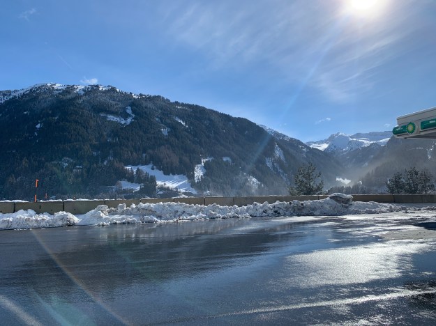 Wir haben uns an einer Raststätte Brötchen und das heiß geliebte schwarze Gold (für alle, die das nicht kennen – ich meine Kaffee 😂) gekauft. Übrigens heißt ein schwarzer Kaffee in Österreich „Verlängerter)…