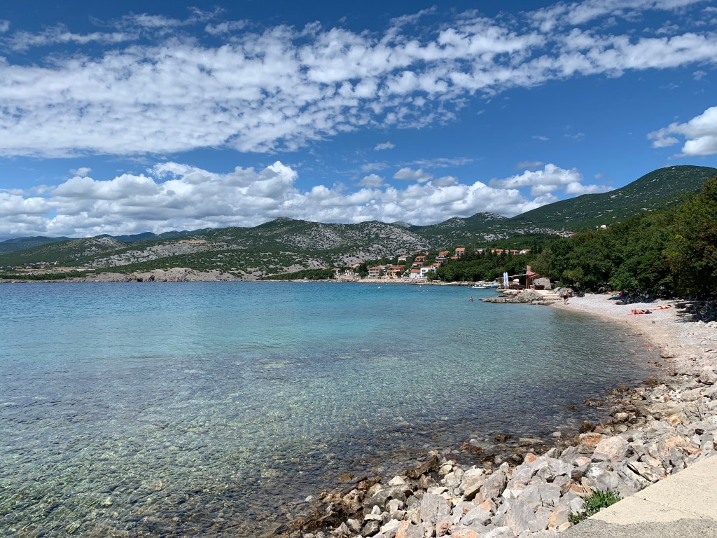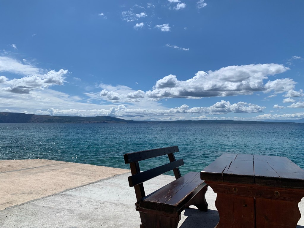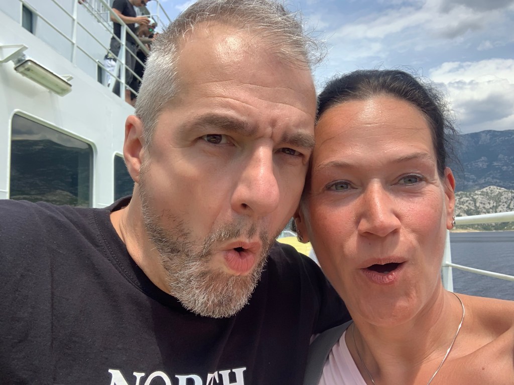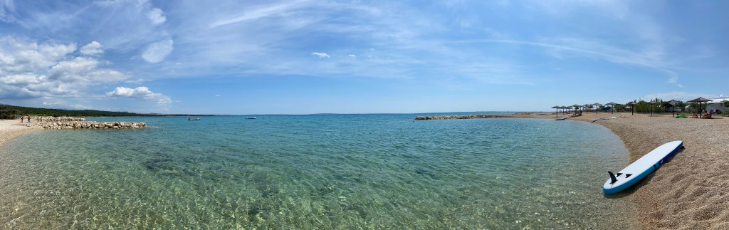 Und auf dem Weg nach Pag. Wir haben die Fähre genommen und sind nun auf unserem Stellplatz angekommen. Das Wetter spielt mit und ich weiß jetzt, warum man Kroatien die Karibik der Adria nennt. Ich stehe endlos auf türkisfarbenes Wasser 😍