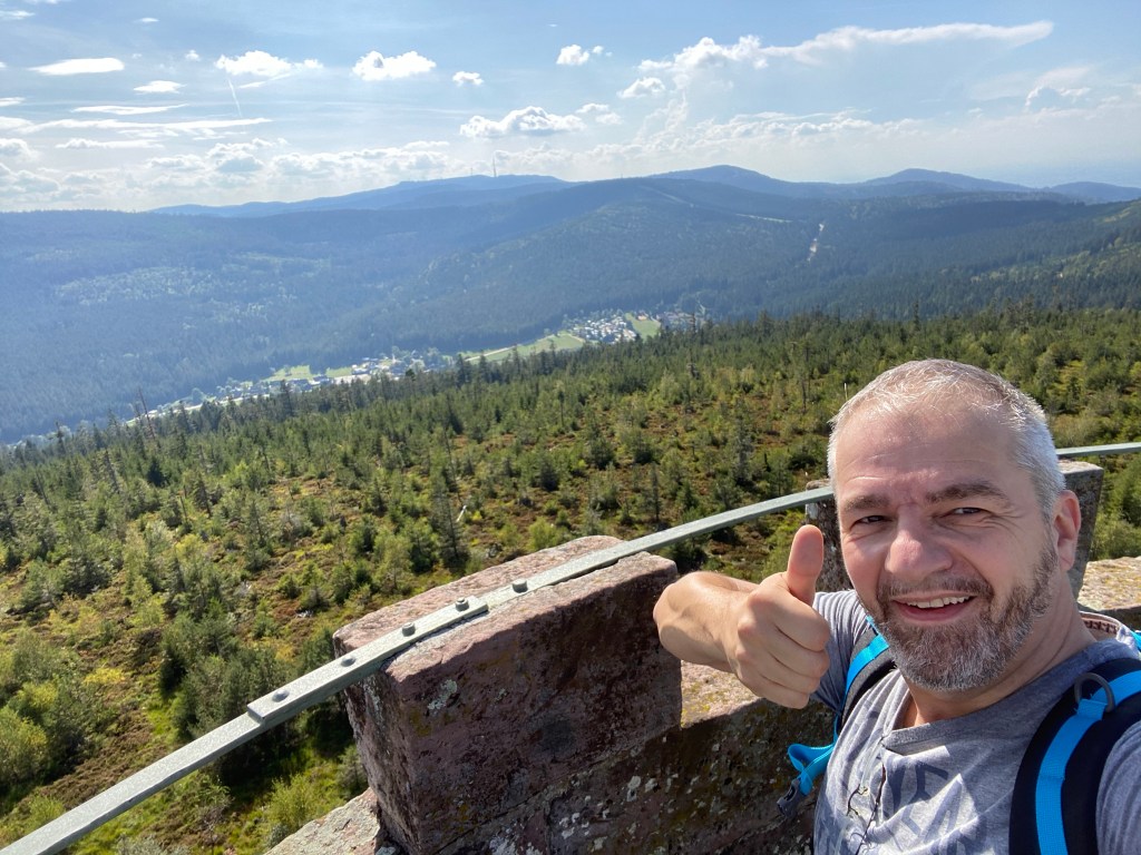 Wir haben am Turm eine kleine Pause gemacht und sind dann weiter, wir wollten dann weiter zur Schwarzentalbachsperre… also wanderten wir weiter und weiter und weiter… und jedes Mal, wenn der Weg sich gabelte, ging unser Weg bergauf – na gut, nicht wirklich jedes Mal, die Badener Höhe mit dem Turm war dort wohl der höchste Punkt.
