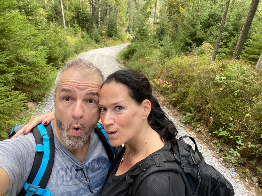 Wie dem auch sei, wir stärkten uns mit einem späten Frühstück und dann zogen wir unsere neuen Wanderschuhe an, packten Wasser und Skye (unsere Drohne) ein und dann wanderten wir mal drauf los. An den Wanderstrecken waren auch kleine Gasthöfe – unser Plan war es, ein wenig zu wandern und dann was leckeres Schwarzwald-Typisches zu snacken und vielleicht noch ein frisch gezapftes Bier zu trinken. Nach dem ersten Kilometer kam das erste Gasthaus und wir sagten uns, dass wir erstmal ein wenig weiter wandern und uns die Auszeit erarbeiten wollten… gesagt, getan, wir wanderten…