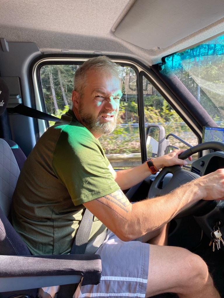 Ok, wir fangen mal von vorn an. Unser Plan war es, gestern bis nach Österreich zu fahren. Das haben wir auch geschafft. Mike und ich haben uns mit dem Fahren abgewechselt, Mike hat dann die „Nachtschicht“ übernommen. Ich hab ehrlich gesagt, zwei Stunden während der Fahrt geschlafen und dann war ich wach und echt fit – also nach null Uhr und im Auto im Dunkeln… das bin mal gar nicht ich… bin nicht sicher, ob irgendjemand meinen Körper ohne mein Wissen oder Einverständnis in der Zeit übernommen hat. Fühlte mich aber ganz normal 😂. Gegen 2 h haben wir die Maut für Österreich an einer der letzten Tankstellen in Deutschland aufgeladen und dann sind wir gegen 3.15 h nachts in Österreich auf einem Rastplatz angekommen, haben kurz geduscht, ein Gute-Nacht-Bier getrunken und sind gegen vier Uhr im Bett gewesen. Unser Wecker klingelte um 6.45 h… also hoch aus der Koje, Mike hat uns Kaffee für die Weiterfahrt gekocht, dann getankt und zwei leckere belegte Laugenbrezel erstanden und auch verhaftet und waren dann gegen 10.15 h an der slowenischen Grenze, danach kurz die Maut aufgeladen und dann weiter in Richtung Kroatien. Dort an der Grenze sind wir gegen 12.15 h gewesen. Weder an der österreichischen, noch an der slowenischen und mal schon gar nicht in der kroatischen Grenze hat man unsere Persos oder die Impfnachweise kontrolliert. Läuft echt gut in Europa… 😂