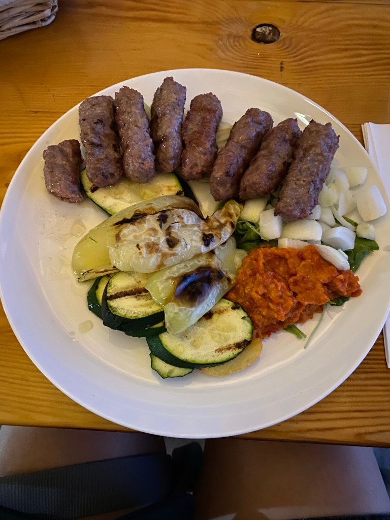 Nachtrag zum Vorabend… wir waren sehr lecker essen, das Restaurant kennen wir vom letzten Jahr. Es gab deftige kroatische Küche, ich hab versucht, das mit gegrilltem Gemüse ein wenig „abzuschwächen“ 😂