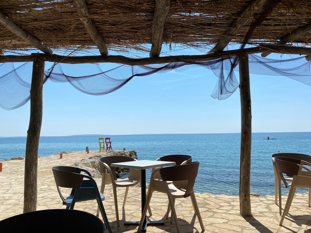 Nun ja, also haben wir die an und zu regenfreie Zeit für Spaziergänge genutzt, unsere Stühle, den Tisch und die Fahrräder verstaut und sind dann Abends noch in das Restaurant gegangen und haben (total kroatisch) eine super leckere Pizza gegessen.