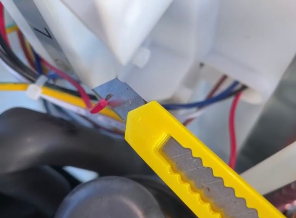Also hat er es abisoliert, mit einem Lötverbinder verbunden, mit einem Schrumpfschlauch isoliert und was soll ich sagen??? Operation gelungen, Patient erfolgreich wiederbelebt. Klimaanlage läuft 👍👍👍