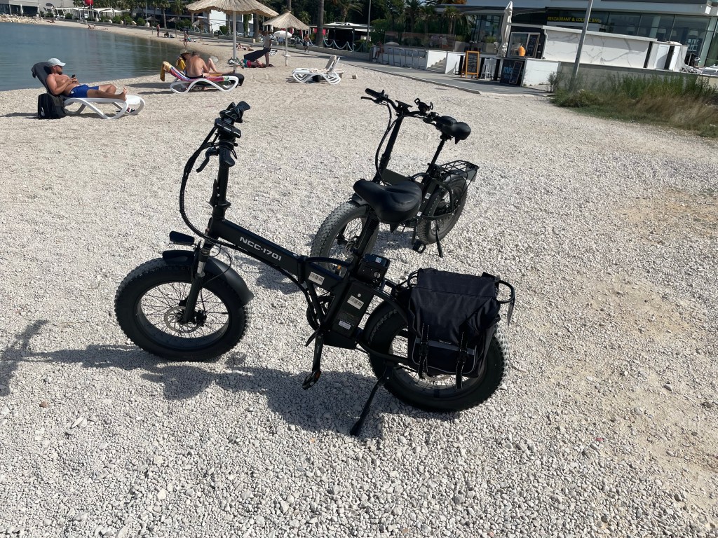 Wieder tolles Wetter und heute haben wir unsere neuen E-Bikes ausprobiert. Also Helm auf, Turnschuhe an (das fühlte sich verdammt komisch an, unsere Füße haben sich sehr schnell an die Badelatschen gewöhnt).