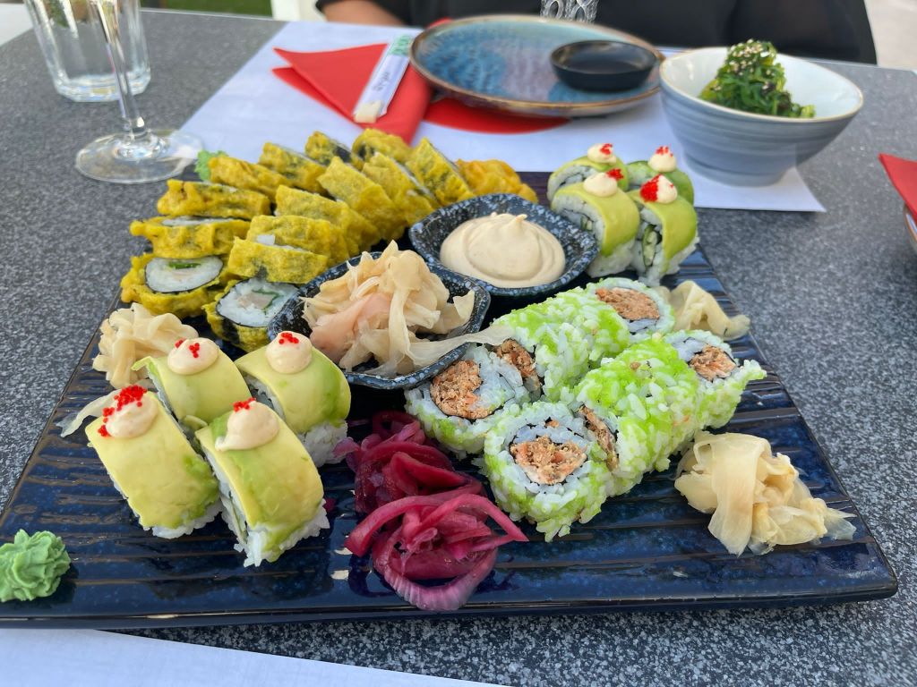 Und dann haben wir das Sushi in mehreren Steps bestellt… zum einen, weil wir uns Zeit lassen mit dem Essen und zum anderen, weil roher Fisch nicht unbedingt „stundenlang“ auf unserem Tisch in der Sonne stehen muss.