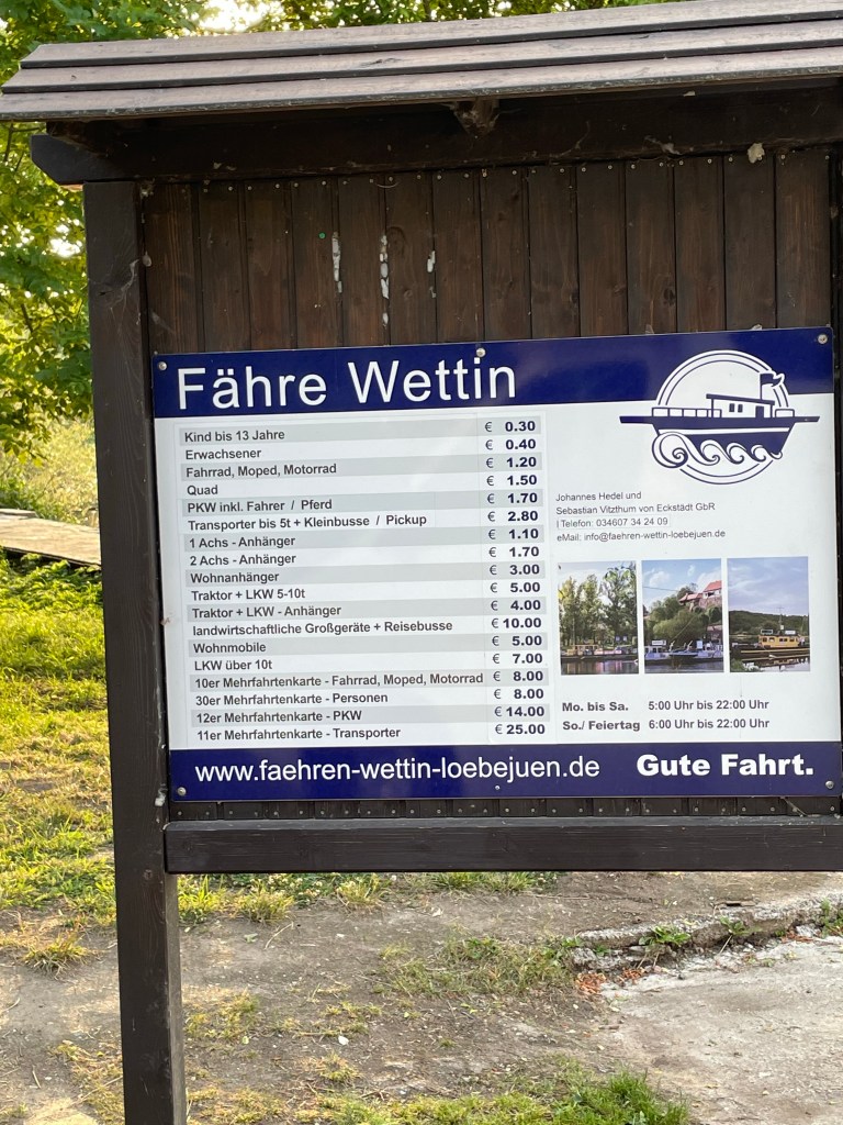 Wir mussten sogar eine Fährfahrt machen und für die Überquerung eines ca. 25 Meter breiten „Flusses“ haben wir schlanke € 5,40 bezahlt 😂