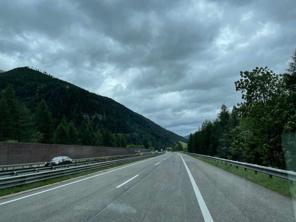 Mike hat uns Kaffee gekocht und von der Raststätte belegte Brötchen gekauft und um kurz nach acht Uhr ging es weiter durch Österreich zur slowenischen Grenze. Es hatte bereits die Nacht über geregnet und auch heute morgen war der Himmel bedeckt und es regnete leicht.
