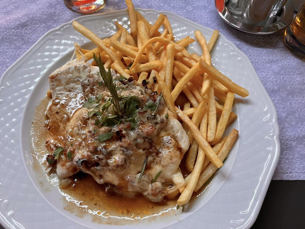 Gegen 19 Uhr sind wir dann geduscht raus aus der Therme, haben uns im Womo umgezogen und wollten dann im Ort was essen gehen. Das eine oder andere Restaurant haben wir auch gefunden, waren jedoch für ein Sterne-Restaurant eher unpassend gekleidet (Shorts und Badelatschen), also entschieden wir uns für diese Lokalität