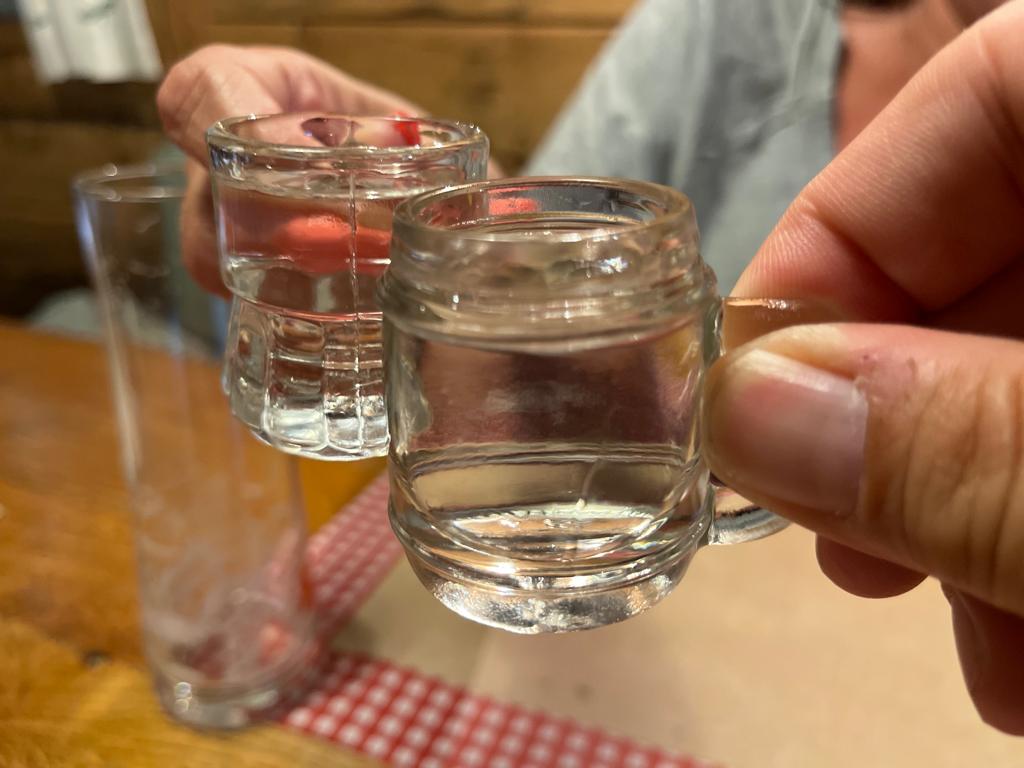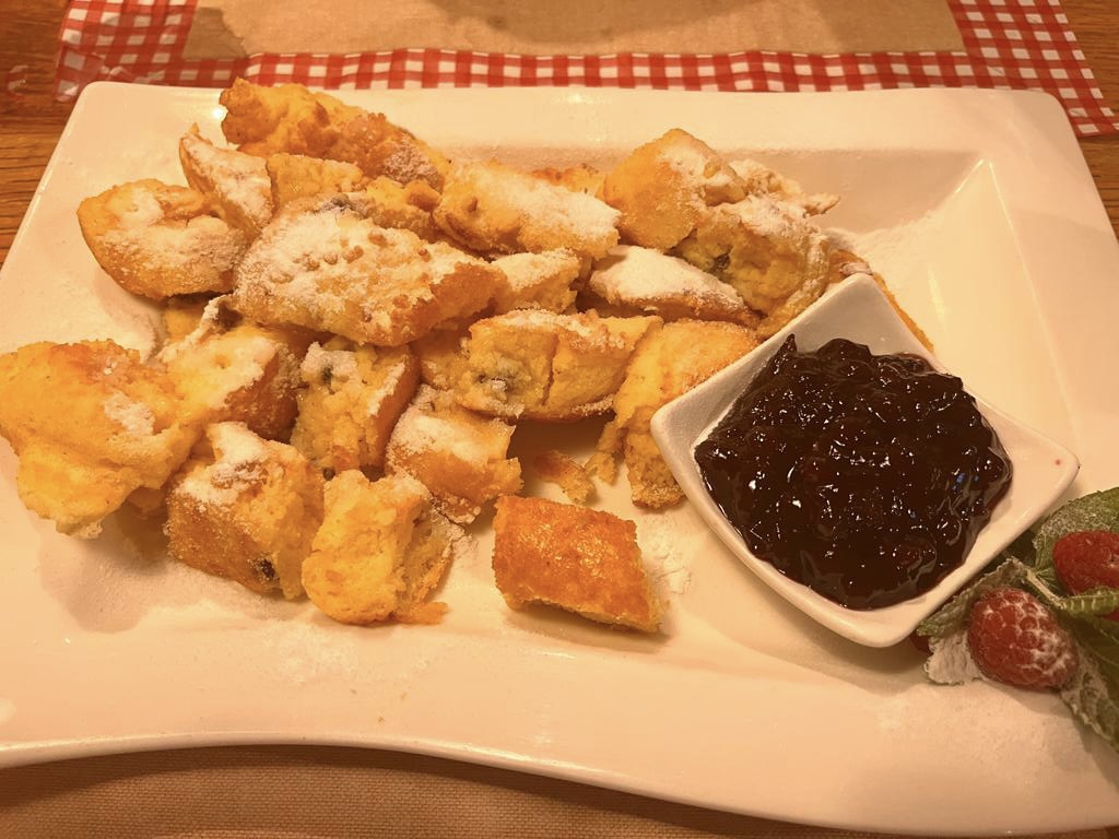 Wir haben uns sehr gut und auch lang mit dem Chef der Jausenstation unterhalten, er war früher Lawinenpolizist und hat nun einen Bauernhof und ein Restaurant. Dann kam ich auf die aberwitzige Idee, ich müsste unbedingt noch Kaiserschmarrn probieren, immerhin sind wir in Österreich… dazu gab es noch einen Obstler auf’s Haus