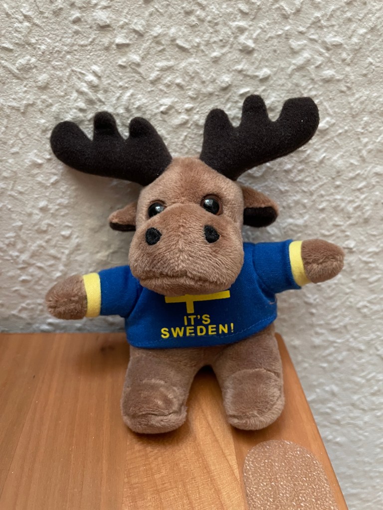 Wir sind bei strahlendem Sonnenschein aufgewacht, Mike ist schnell in die Klamotten gesprungen und hat uns einen leckeren Kaffee Crema gezapft (die Maschine als auch Wasser, Süßigkeiten und der Prosecco als auch Wein) stehen den Gästen der Kabinen im 11. Stock kostenlos zur Verfügung. Also haben wir erstmal einen sehr leckeren Kaffee genossen, hatten allerdings mal so gar keinen Hunger und haben uns dann entschieden, das Frühstück ausfallen zu lassen. Der Morgen fing entspannt an, gegen 8.30 Uhr passierten wir die ersten Schiffe, die vor dem Hafen von Göteborg vor Anker lagen. Dann gegen 9 Uhr haben wir die Kabine verlassen und uns auf den Weg zum Womo gemacht. Man kann allerdings erst auf die Autodecks, wenn das Schiff angelegt hat, also warteten wir geduldig (mit Maske) im Treppenhaus mit einigen anderen Leuten (ohne Maske) darauf, dass sich die Türen zum Autodeck öffnen. Dies passierte dann, wir gingen zu Hupi, Mike schloss mir die Tür auf und ich verstaute schnell den Rucksack, entfernte unseren Einbruchschutz im Fahrerhaus, während Mike schon das im Duty Free erstandene Bier in unserer Kühltasche in der Garage verstaute. Ich schaltete unsere Navi an, steckte sie an die Halterung und fand mich gut, dass ich schon soweit alles zur Abfahrt vorbereitet hatte. Mike kam rein, setzte sich und schon ging es für uns schon raus aus der Fähre. Dann im Hafen wurden wir von einer Zollbeamtin angehalten, die uns fragte, ob wir etwas zu verzollen hätten. Wir verneinten dieses, da anders als in Norwegen – Alkohol in normalen Mengen – nicht verzollt werden muss. Dann wurden wir gefragt, ob wir Haustiere an Bord hätten, auch das verneinten wir. Dann hat Mike von der netten Zollbeamtin sogleich ein Souvenir geschenkt bekommen. Wie lieb, oder ? Seht selbst