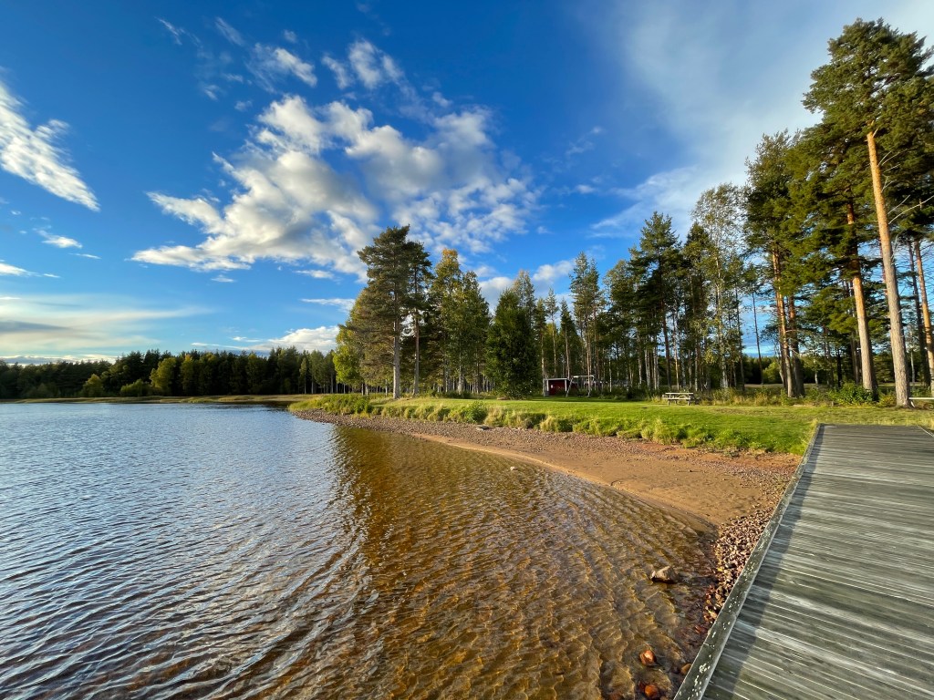 Wir kamen also voller Hoffnung in Amal an und was soll ich sagen ? Der Sushi-Waggon war weg ;-((( Also haben wir Hupi geparkt, über die App „Exit“ die nächsten Supermärkte aufgerufen und sind dann zu Fuß zum Coop gegangen. Dort angekommen, haben wir belegte Sandwiches als auch ein frisch gegrilltes Huhn (hab ich schon erzählt, dass Huhn auf schwedisch „Kükkelen“ heißt???), frischen Salat, Dressing und Brot erstanden. Es sollte dann abends einen frischen Salat mit Huhn geben. Nach dem Einkauf ging es für uns weiter in den Norden Schwedens – unser Plan ist es, die Wildernisroute noch einmal zu fahren und dann ganz enstpannt in Richtung Meer und da einfach mal schauen, wo es uns gefällt. Über die App „Park4Night“ haben wir einen genialen Platz an einem See gefunden. Den haben wir also angesteuert. Auf der Fahrt haben wir nicht nur gefühlt hundert Blitzer passiert, wir haben auch einen Fuchs, diverse Greifvögel, Pferde, Kühe und Schafe gesehen. Elche und Rentiere stehen noch aus.