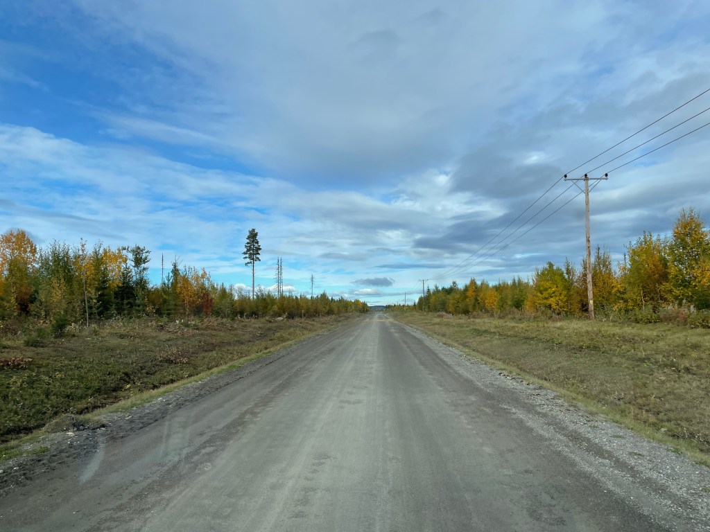 Nach dem Tanken und dem Einkauf sind wir dann weiter in Richtung Wildernisroute, haben während der Fahrt gequatscht und haben das Abbiegen verpasst. Das haben wir dann gemerkt, haben kurzerhand gedreht und haben eine Straße genommen, die auf die Wildernisroute (Vildmarksvägen) führt. Die war auch erst geteert… dann war der Teer auf einmal weg und es wurde eine Schotterstraße, die wir 24 km entlang fahren sollten.