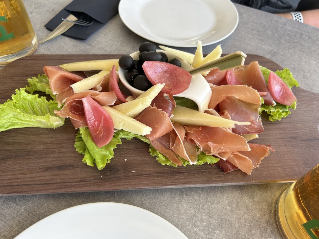 Nach einem Blick in die Speisekarte war schnell entschieden, hier zu abend zu essen. Also bestellten wir eine gemischte Vorspeisenplatte