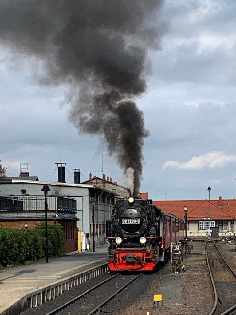 Wir haben uns die Abfahrt des Zuges angeschaut und es war schon sehr beeindruckend… wenngleich die Geschichte nicht wirklich kostendeckend sein kann. Eine Fahrkarte bis zum Brocken und zurück kostet € 47,- und in dem Zug, den wir haben abfahren sehen, waren nicht mehr als sieben Fahrgäste…