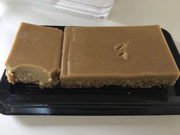 Gestern waren wir Lebensmittel und Getränke einkaufen und was hat der Mann dort gefunden? Ein Paket mit einem großen Stück caramel slice…